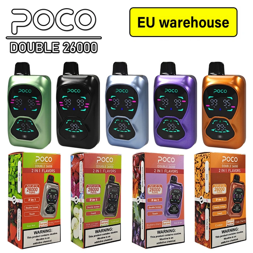 De POCO DB 26000 Puffs Wegwerp Vape levert tot 26.000 puffs met een krachtige 850mAh batterij en 15+15 ml e-liquid. De dubbele schermen tonen het olie- en batterijniveau voor eenvoudige bediening, terwijl de mesh coil zorgt voor een soepele, rijke smaak. Dit 2-in-1 apparaat biedt 15 geweldige smaken en snelle Type-C-oplading. Snelle en gratis verzending vanuit het EU-magazijn.