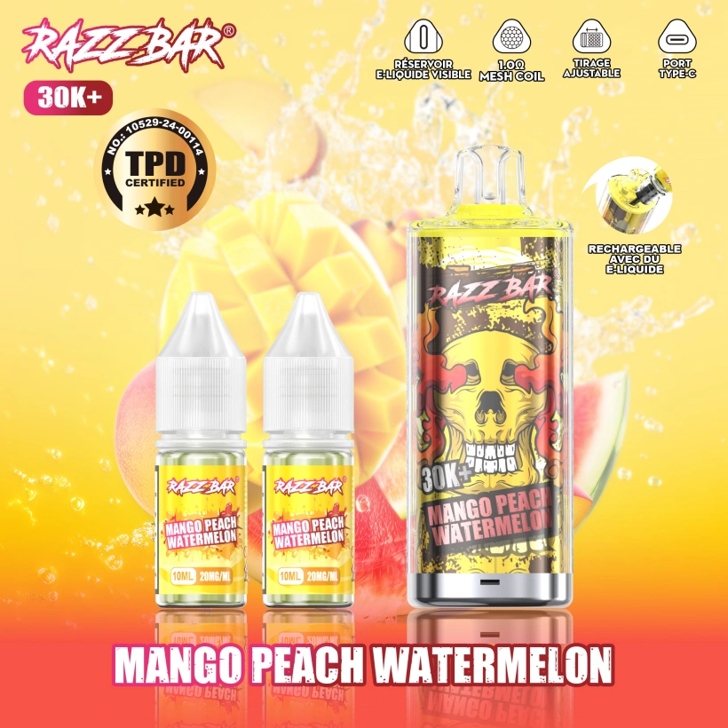 De Razz Bar 30k Puffs Wegwerpvape levert een uitzonderlijke vape-ervaring met meer dan 30.000 puffs, een krachtige 650mAh batterij en een navulbare e-liquid capaciteit van 20ml plus 2ml extra e-liquid. Volledig navulbaar en TPD-conform, dit apparaat stelt je in staat om op een verantwoorde en gemakkelijke manier van je favoriete smaken te genieten. Voorzien van een mesh coil voor soepele damp, instelbare luchtstroom voor een persoonlijke trek en Type-C opladen voor snelle betrouwbare energie. Verkrijgbaar in 16 heerlijke smaken, perfect voor persoonlijk gebruik en groothandel, elk pakket bevat 10 stuks per doos, 120 stuks per karton, met gratis verzending vanuit de EU.